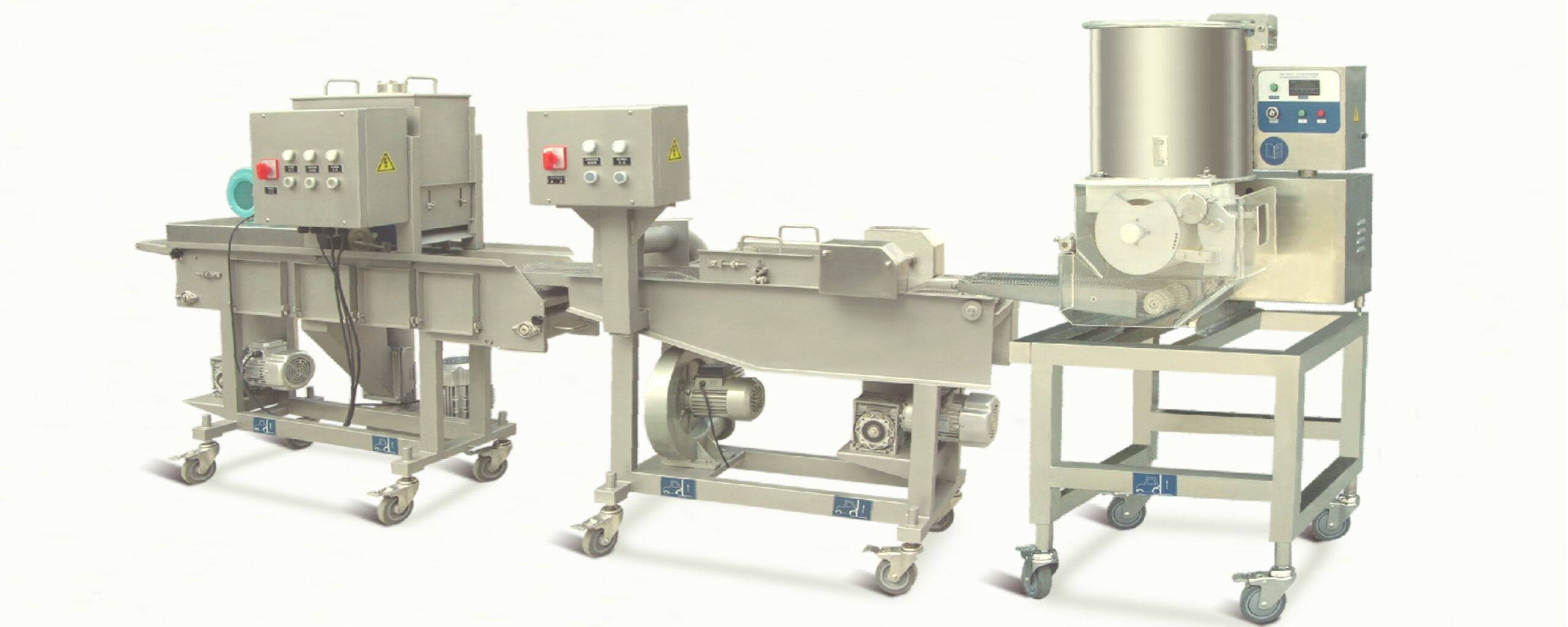 Mini Automatic hamburger processing line can automatically finish the procedure of forming, battering, flouring (predusting), breadcrumbing processing. This line shares the reputation of high automation, mini size, and easy operation, very simple cleaning design.