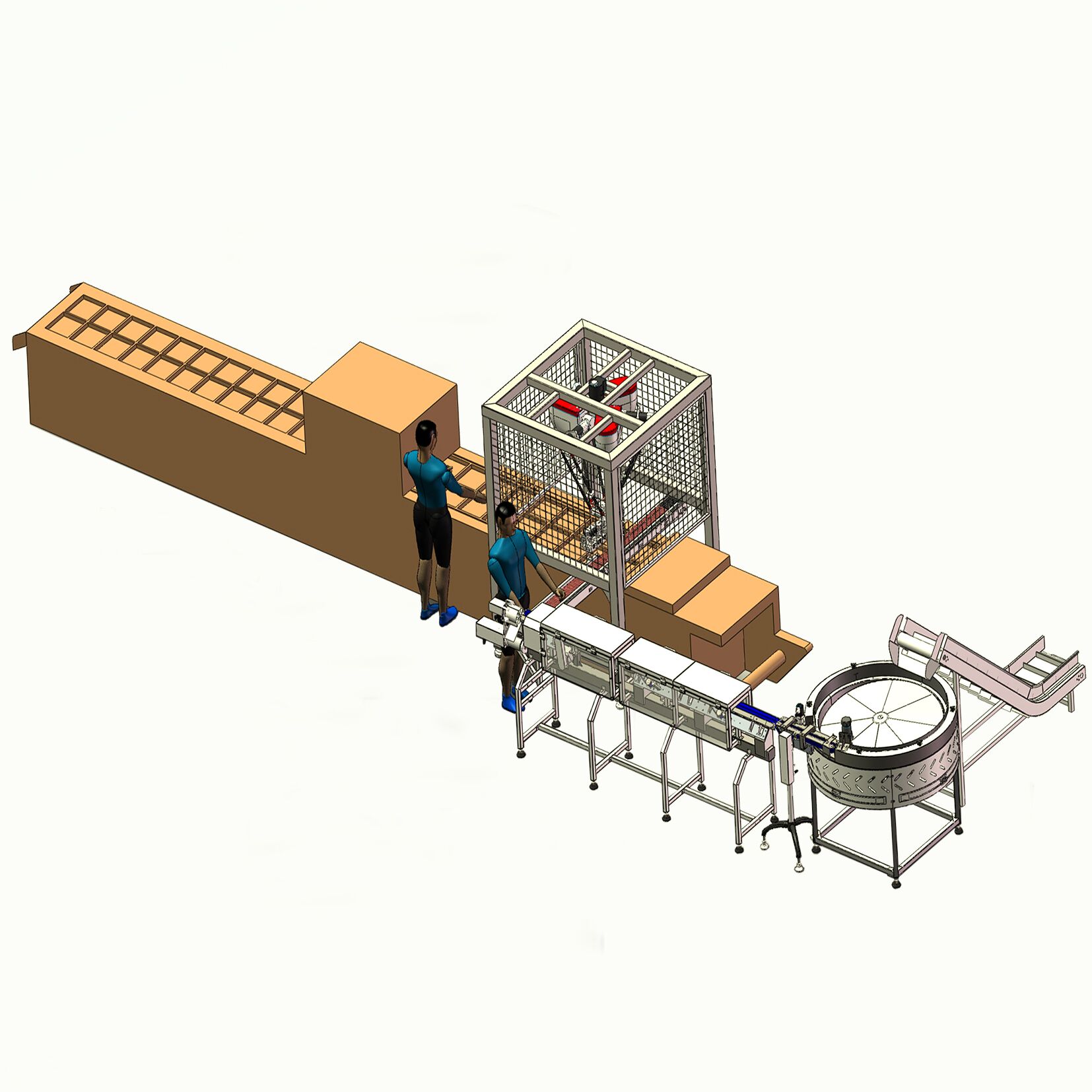It can realize automatic feeding, automatic arrangement, automatic picking, and placing by the robot to stretch the film packaging machine. Greatly reduce labor costs.