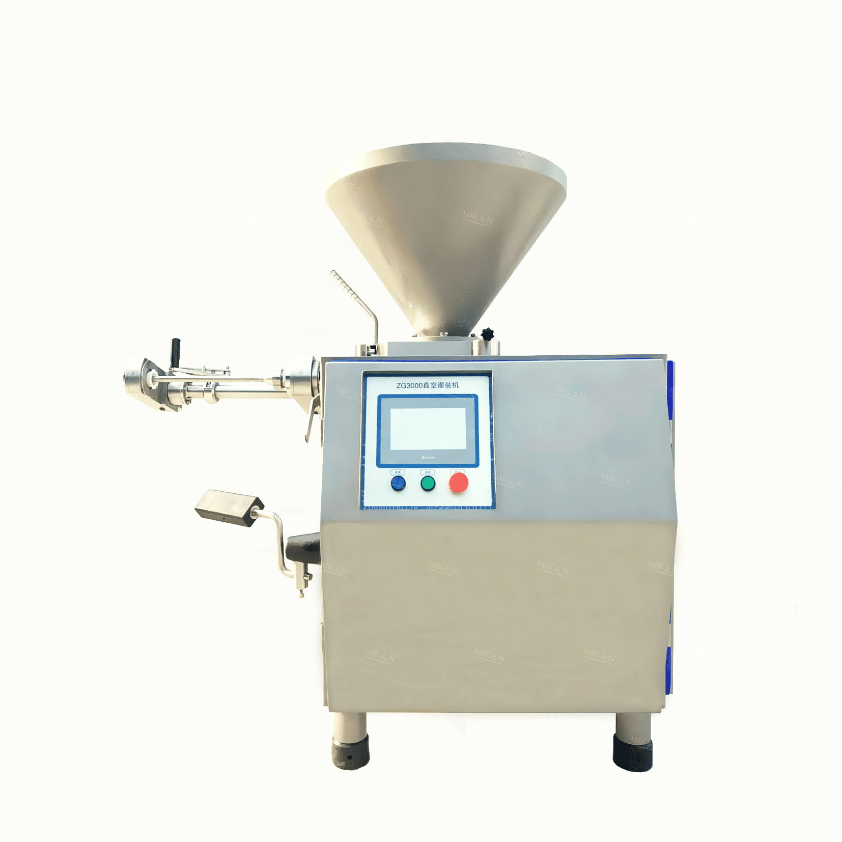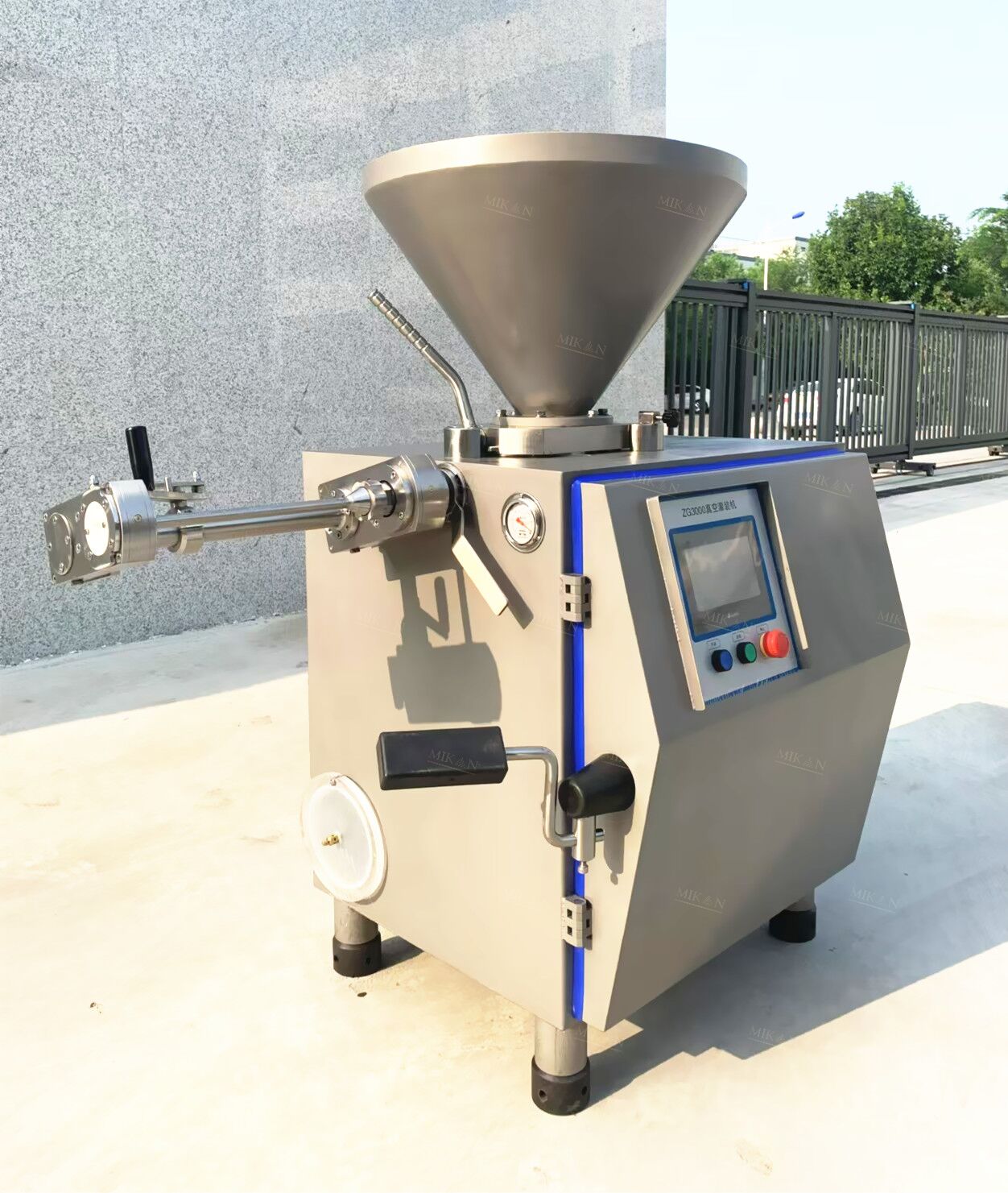 It can produce natural, collagen, cellulose, and plastic casing(combined with a clipper machine) sausages. The vacuum function can ensure precise quantification and suck out the bubble inner the meat material.